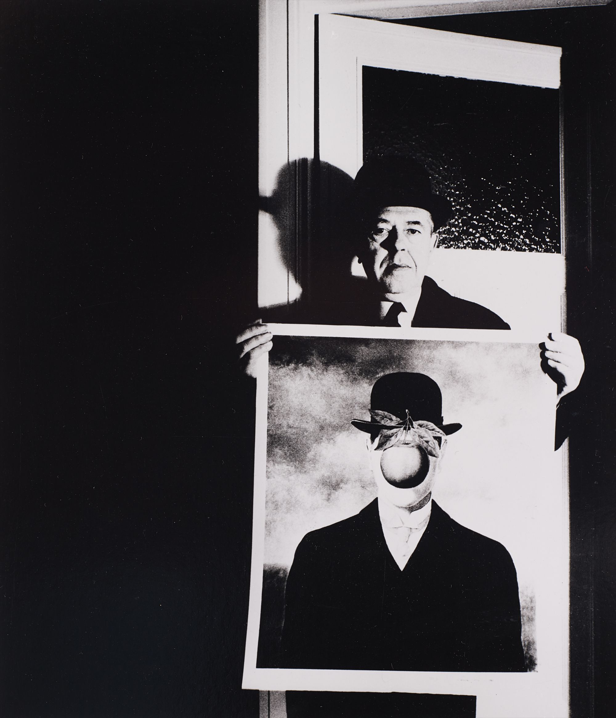 René Magritte with his picture 'The Great War', Brussels