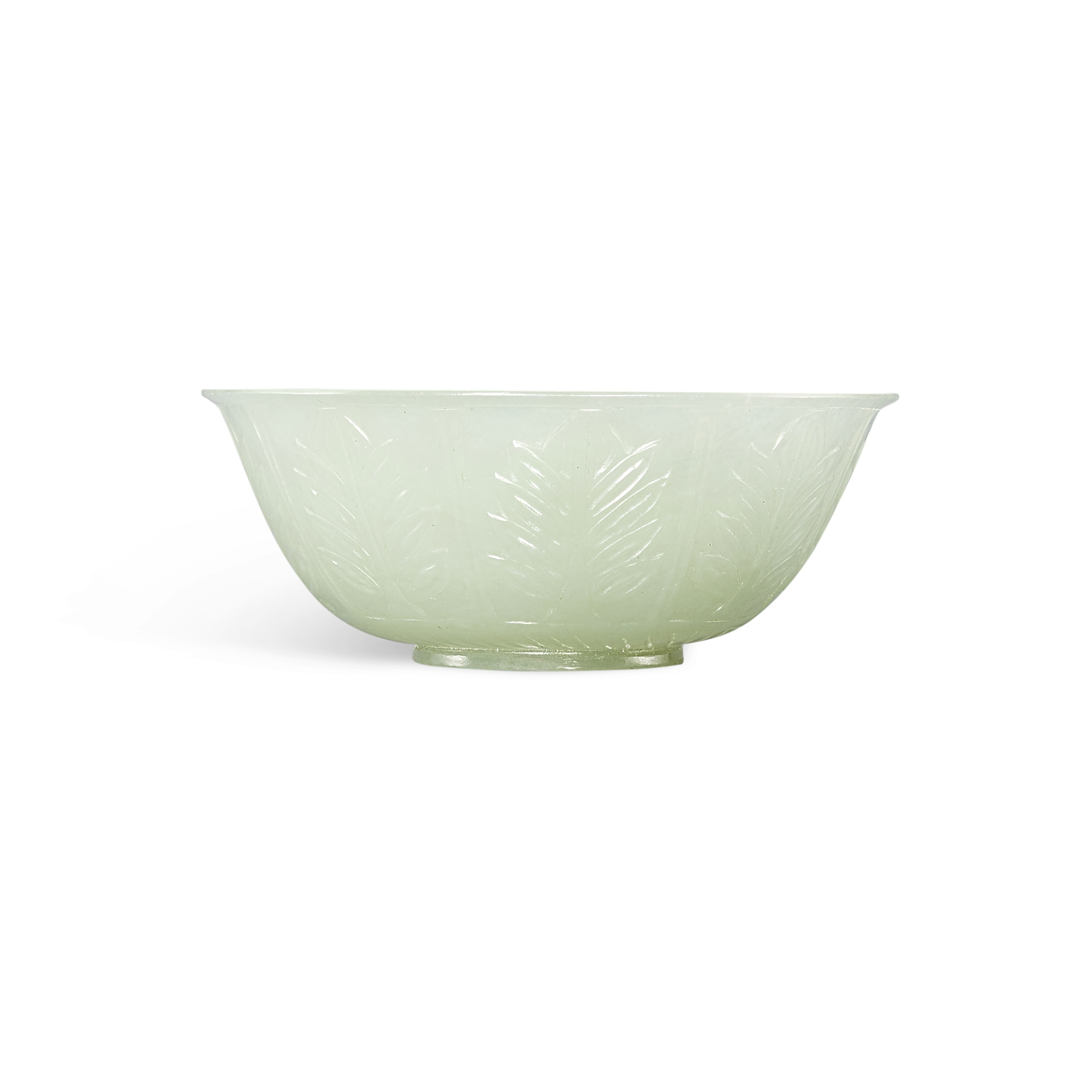 A celadon jade Mughal-style wine bowl, Qing dynasty, 18th century 清十八世紀 青白玉痕都斯坦式盌