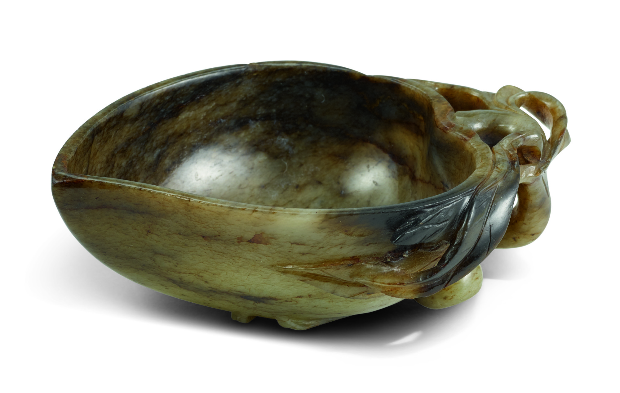 A Celadon And Brown Jade 'peach' Cup | Qing Dynasty, 19th Century [two Items]