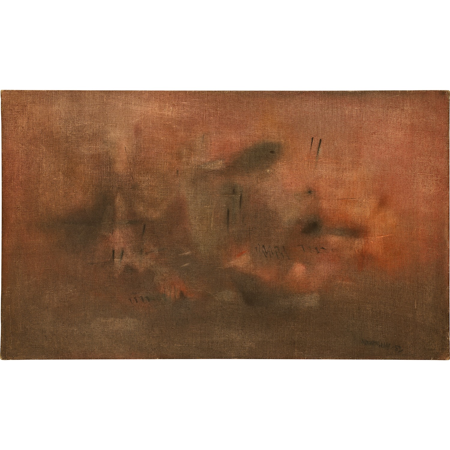 , later and more coolly, found a different night altogether in the American West, where the quality of artificial light against a desert sky produces an almost hallucinatory clarity. For artists working in the second half of the twentieth century, the nocturne became a space to reckon with interior states as much as exterior ones. Norman Lewis, one of the most underrecognized figures of American abstraction, made paintings in the 1960s and 1970s in which dark grounds and luminous vertical elements suggest crowds, ceremonies, and collective mourning without resolving into legible representation. His nocturnal abstractions carry a specific gravity rooted in the civil rights era and the experience of Black America, proving that the night in painting is never politically neutral.