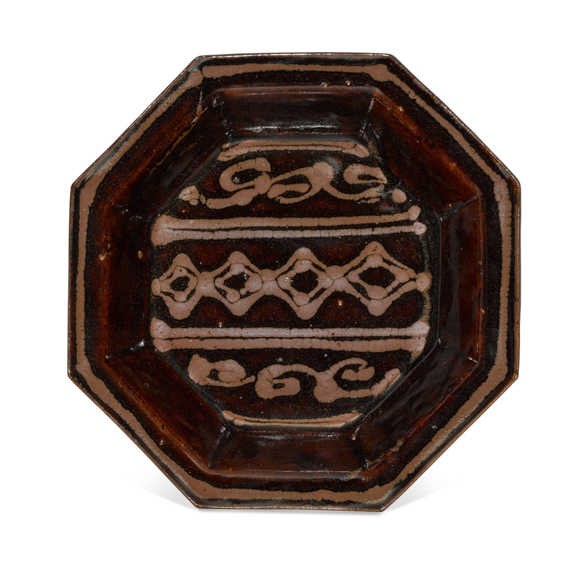 A russet-painted black-glazed octagonal pillow, Jin dynasty 金 黑釉鐵鏽花八方枕