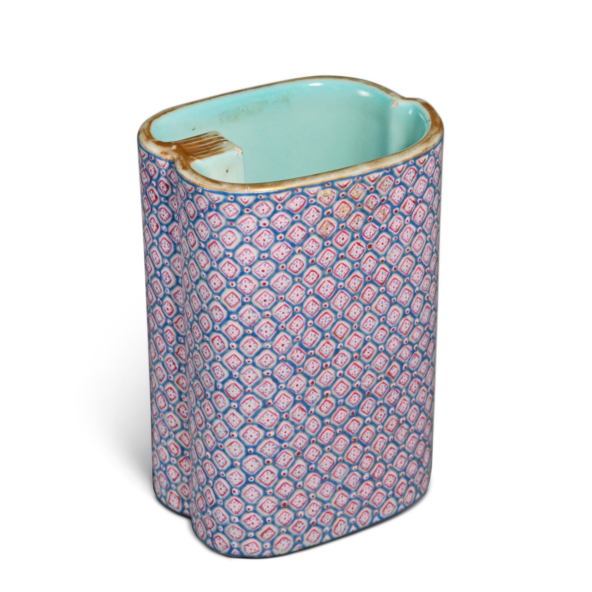 清十八 / 十九世紀 粉彩錦紋小筆筒《浴硯書屋》款