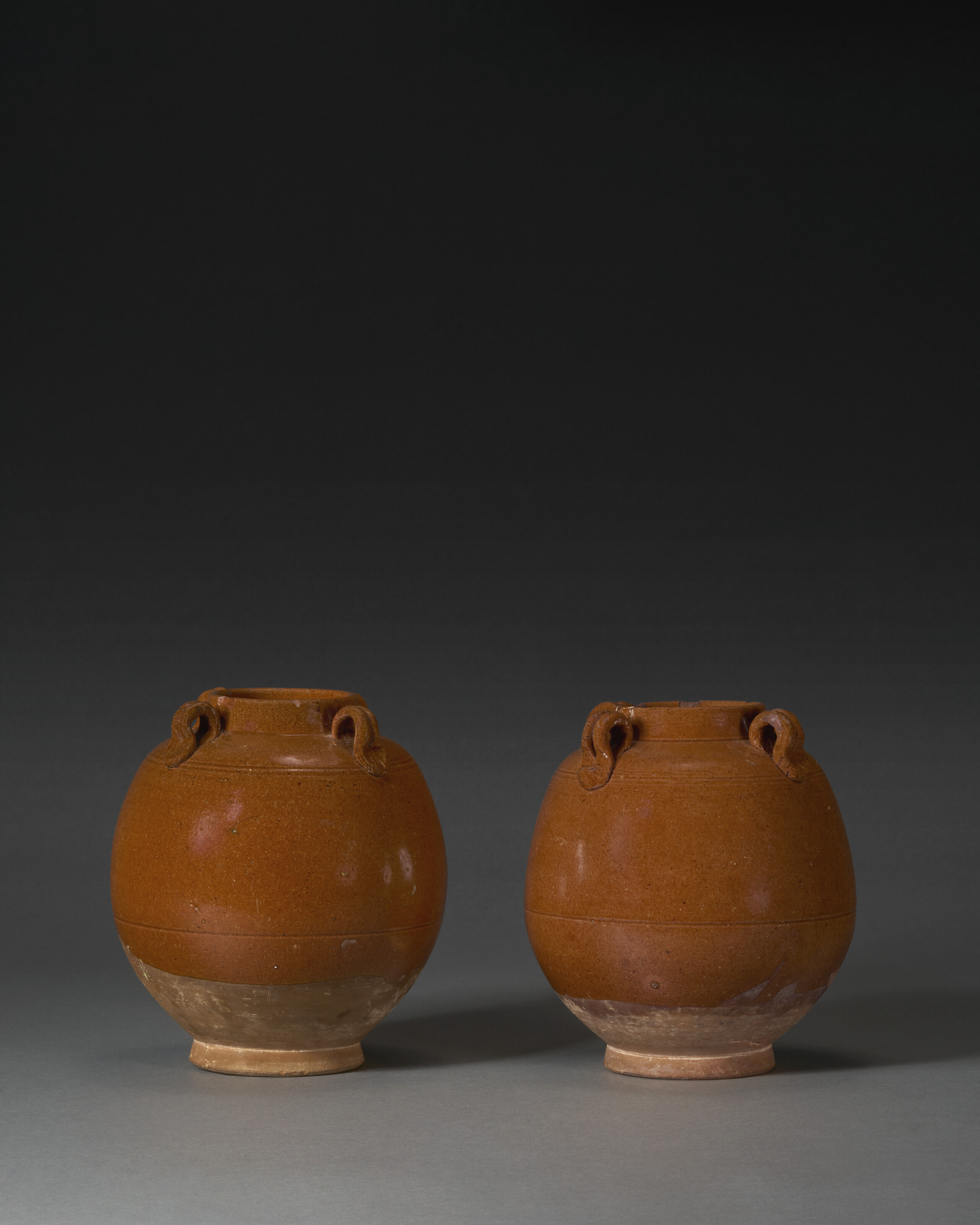 A Pair Of Amber-glazed Pottery Ovoid Jars