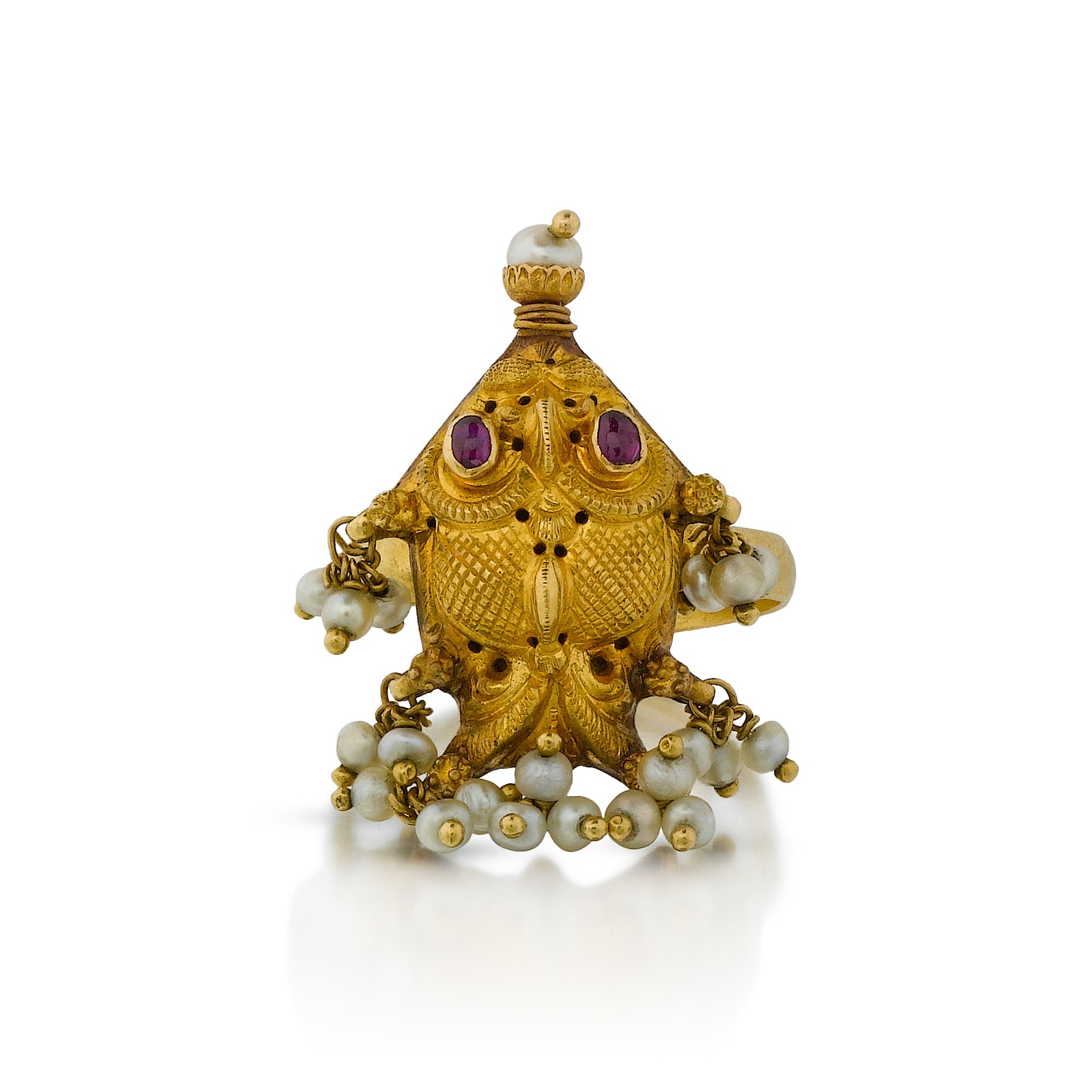 A gold and pearl 'fish' ring