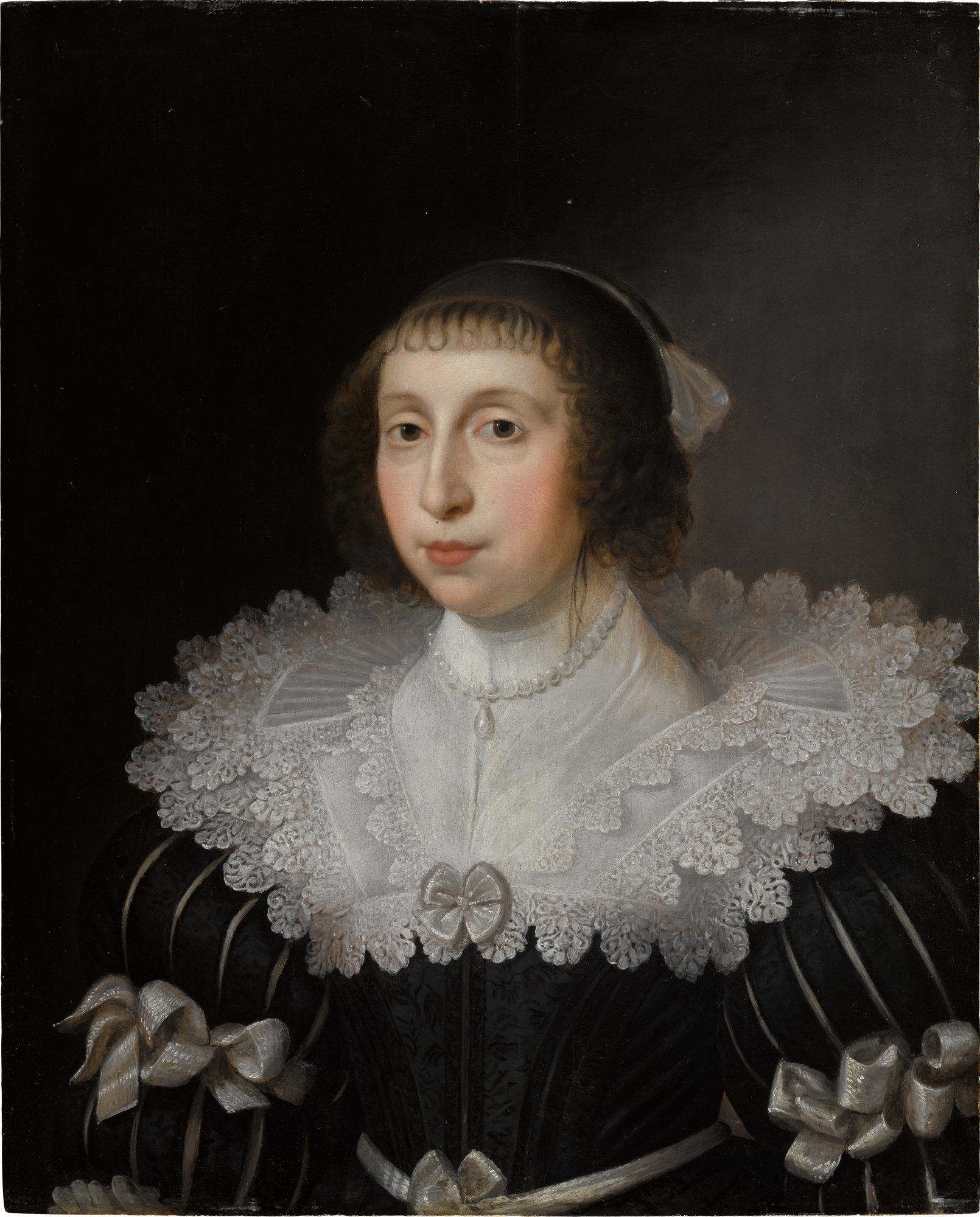 Portrait of a lady, possibly Maria Frances Stevens, wife of Jan Moke (1588–1655) of Wynendale Castle, half-length, wearing black with a ruff and pearls