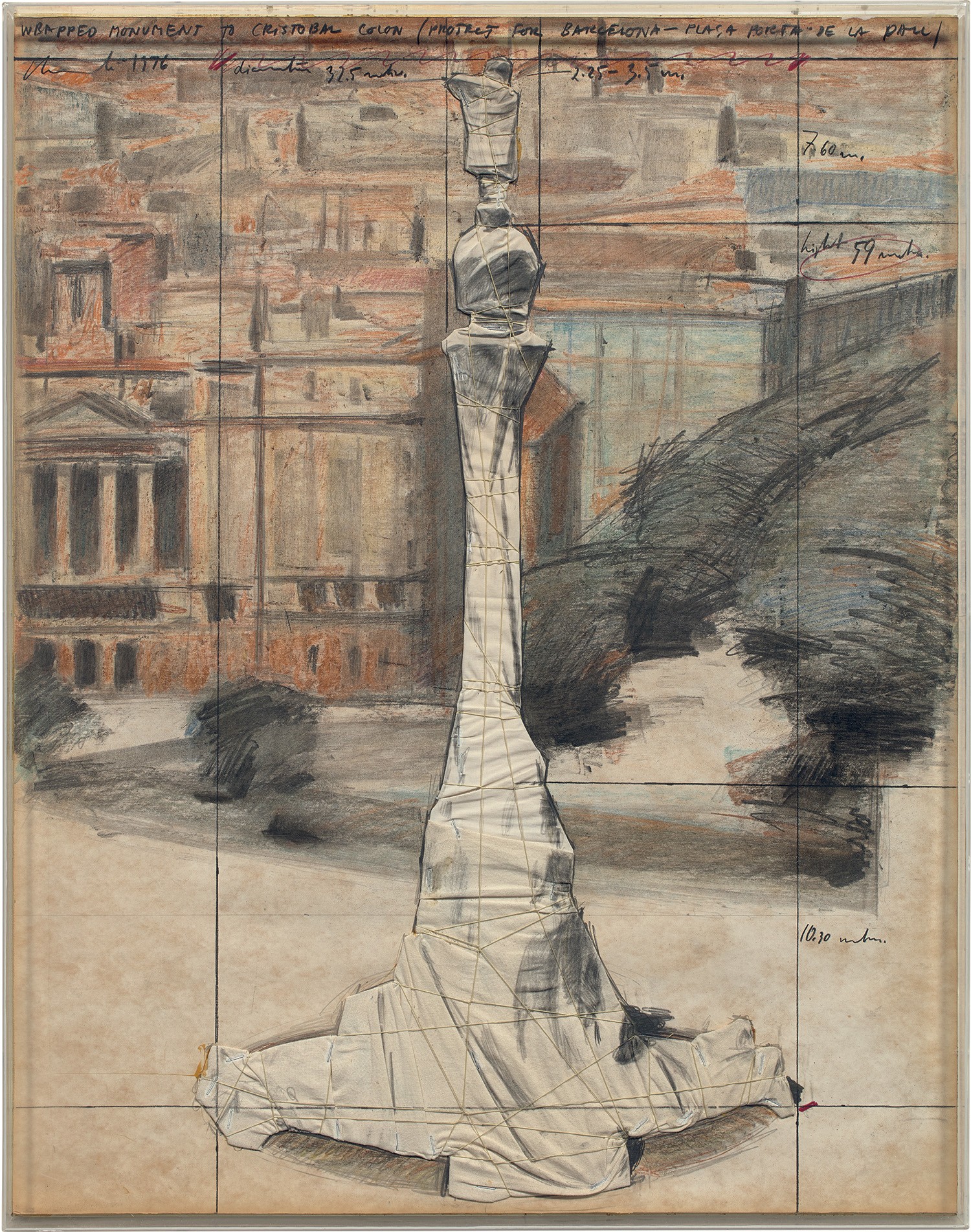 Wrapped Monument to Christobal Colon (Project for Barcelona - Plaça Porta de la Pau), 1976