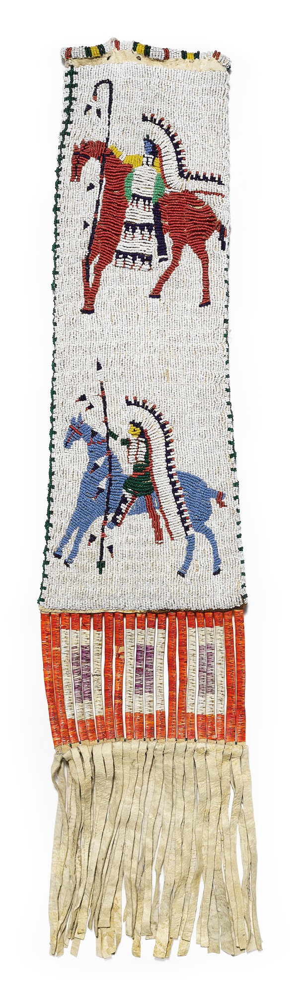 Lakota Pictorial Beaded, Quilled and Fringed Hide Tobacco Bag