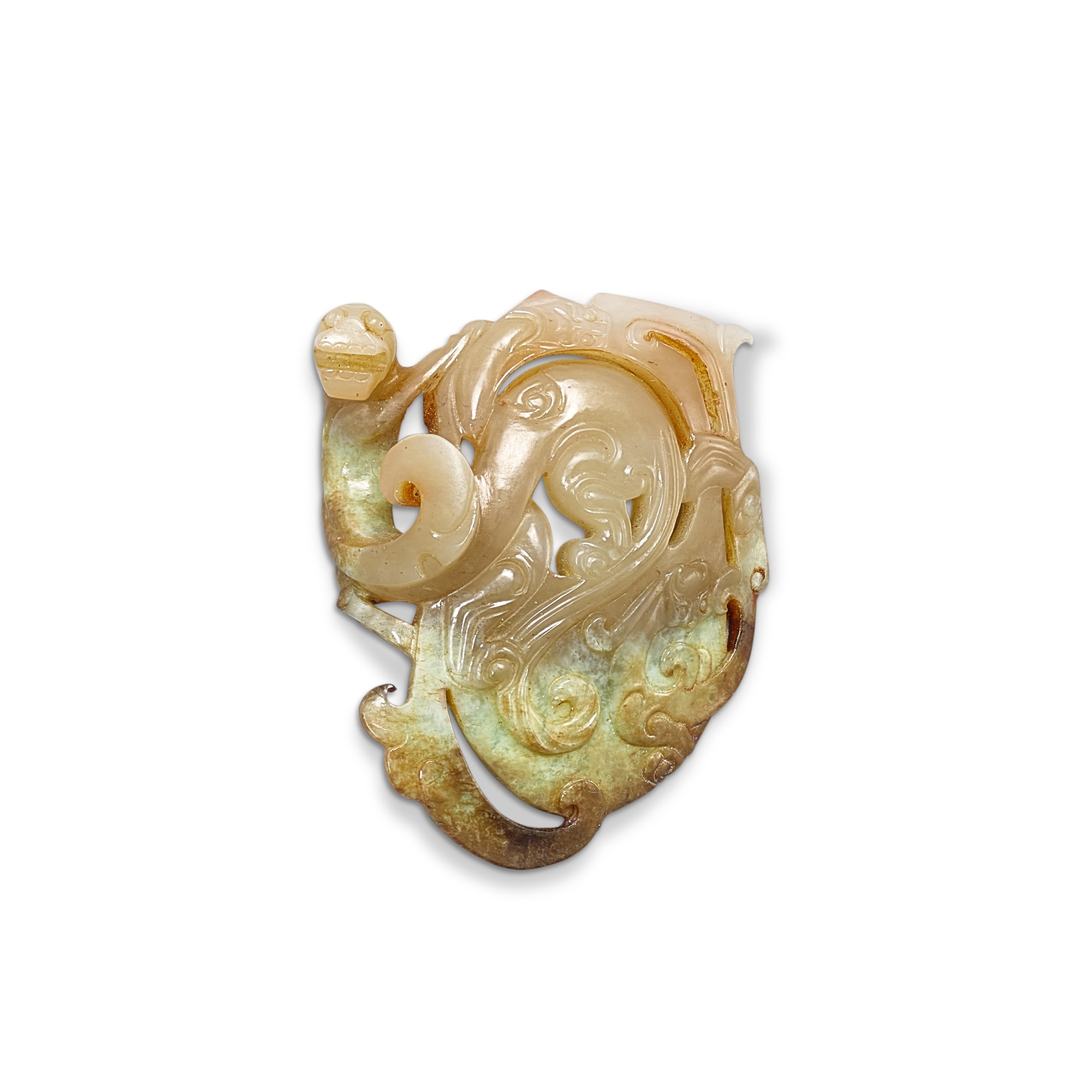 A grey and russet jade reticulated 'dragon' pendant,