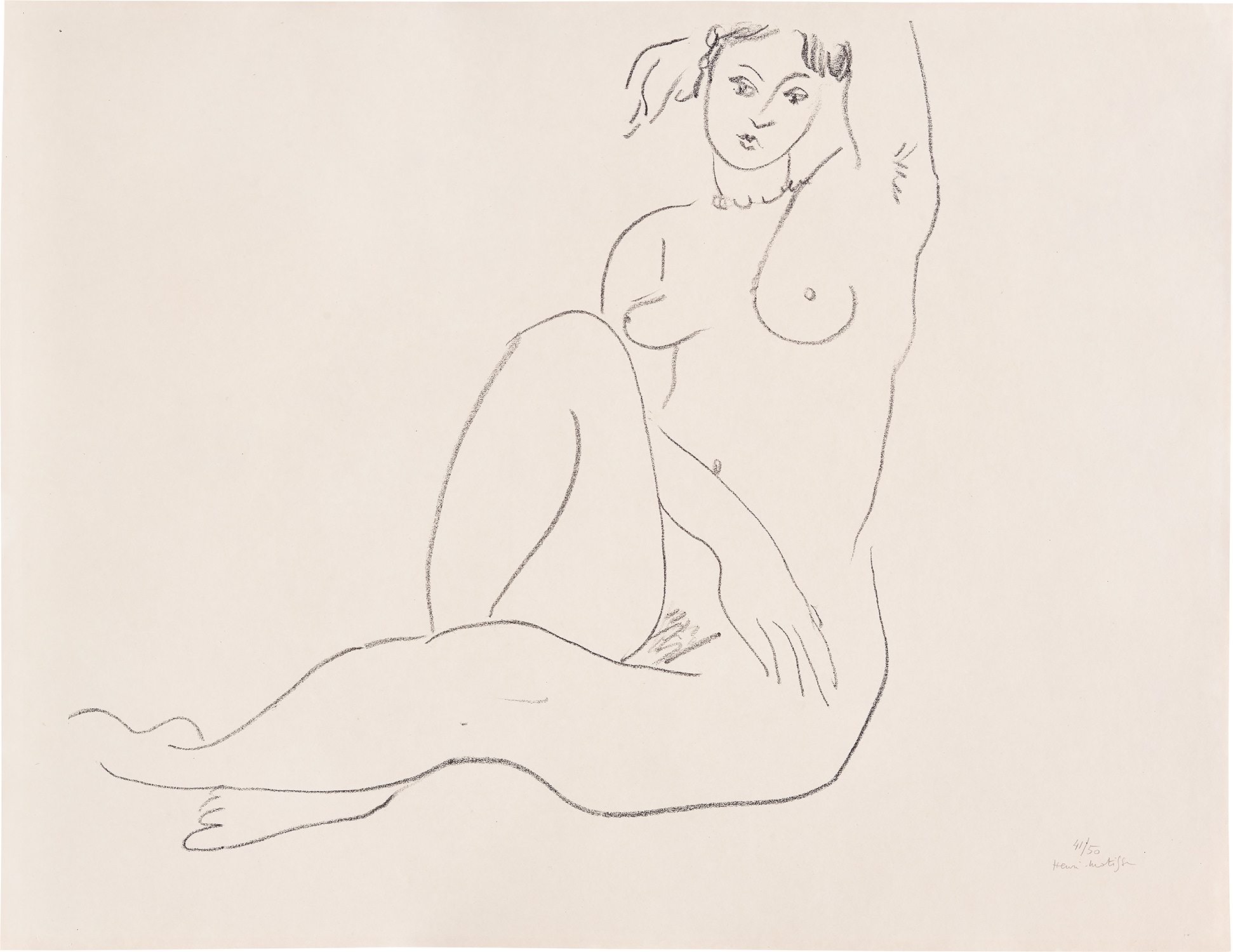 Nu assis, bras gauche sur la tête (Nude Seated, Left Arm Overhead) (D. 497)