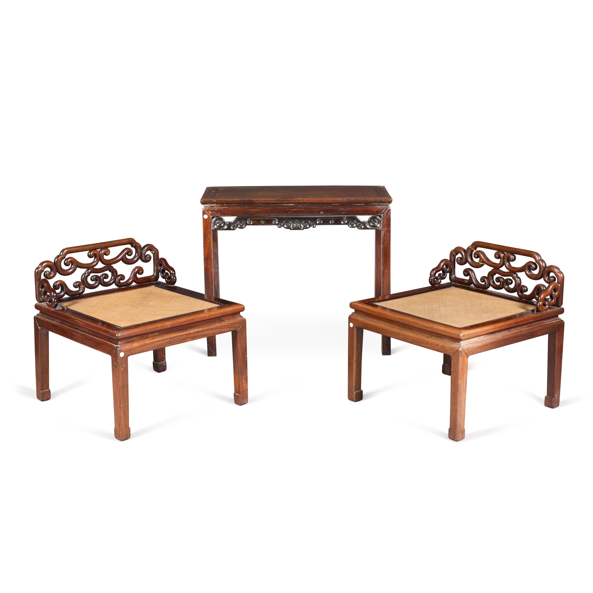 十九 / 二十世紀 紅木束腰條案 及 二十世紀 紅木玫瑰椅 一對