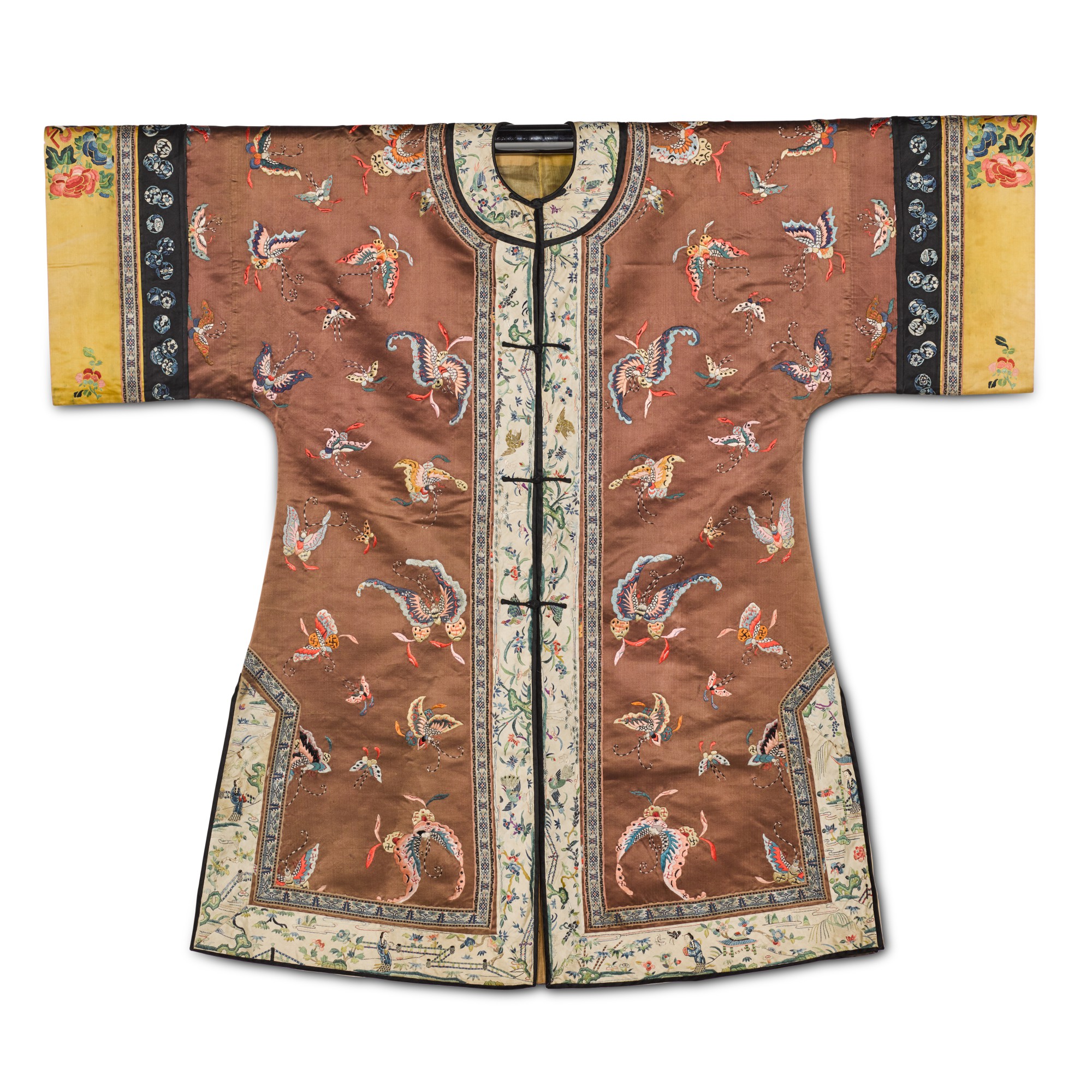 清十九世紀 赭石地彩蝶紋女袍及裙