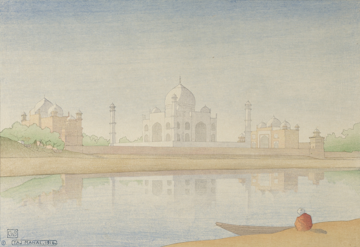 A pietra dura architectural study of the top of the Cenotaph of Shah Jahan in the Taj Mahal, Company School, Agra, circa 1810-20