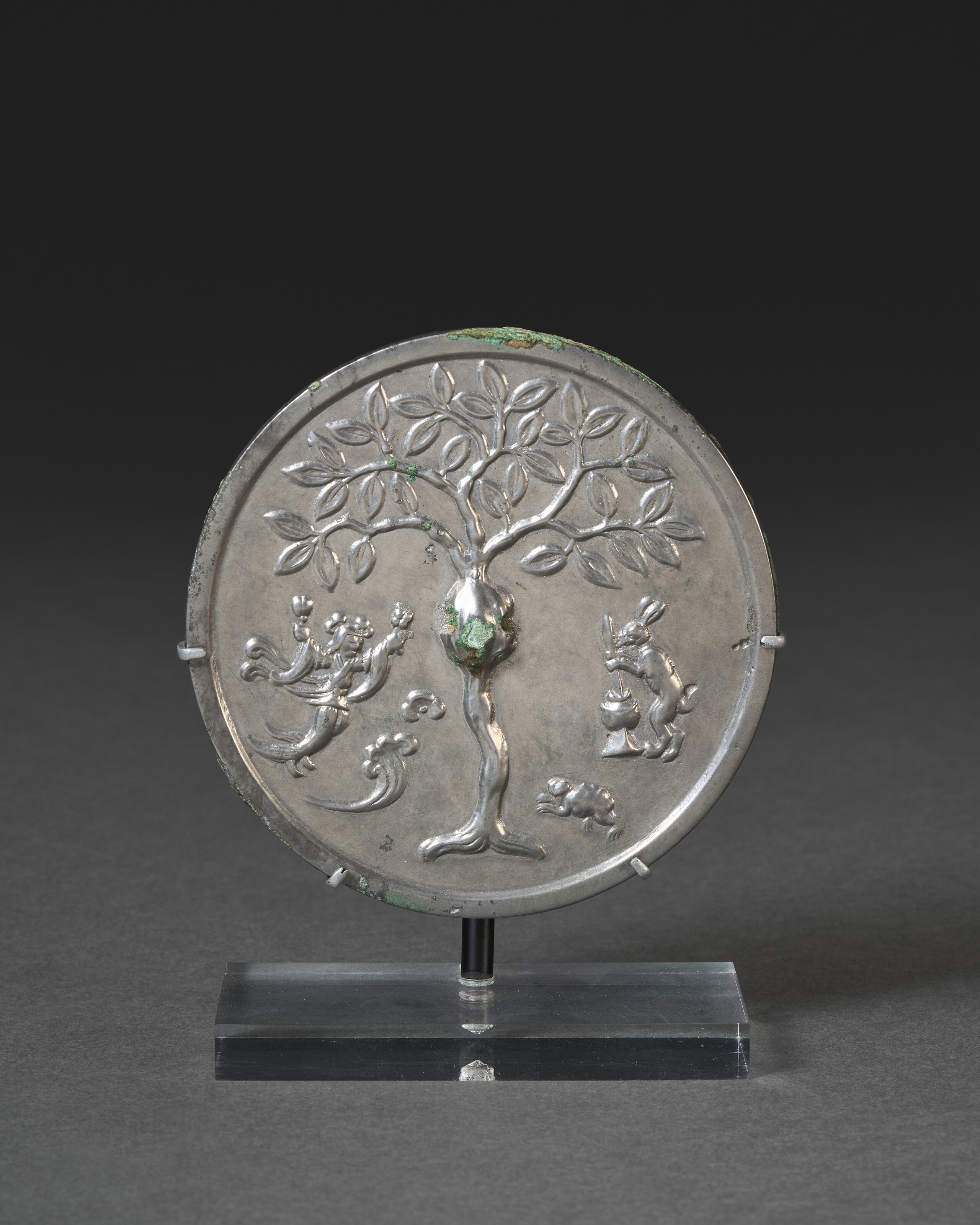 A Small Silvery-bronze Circular 'chang'e And Rabbit' Mirror