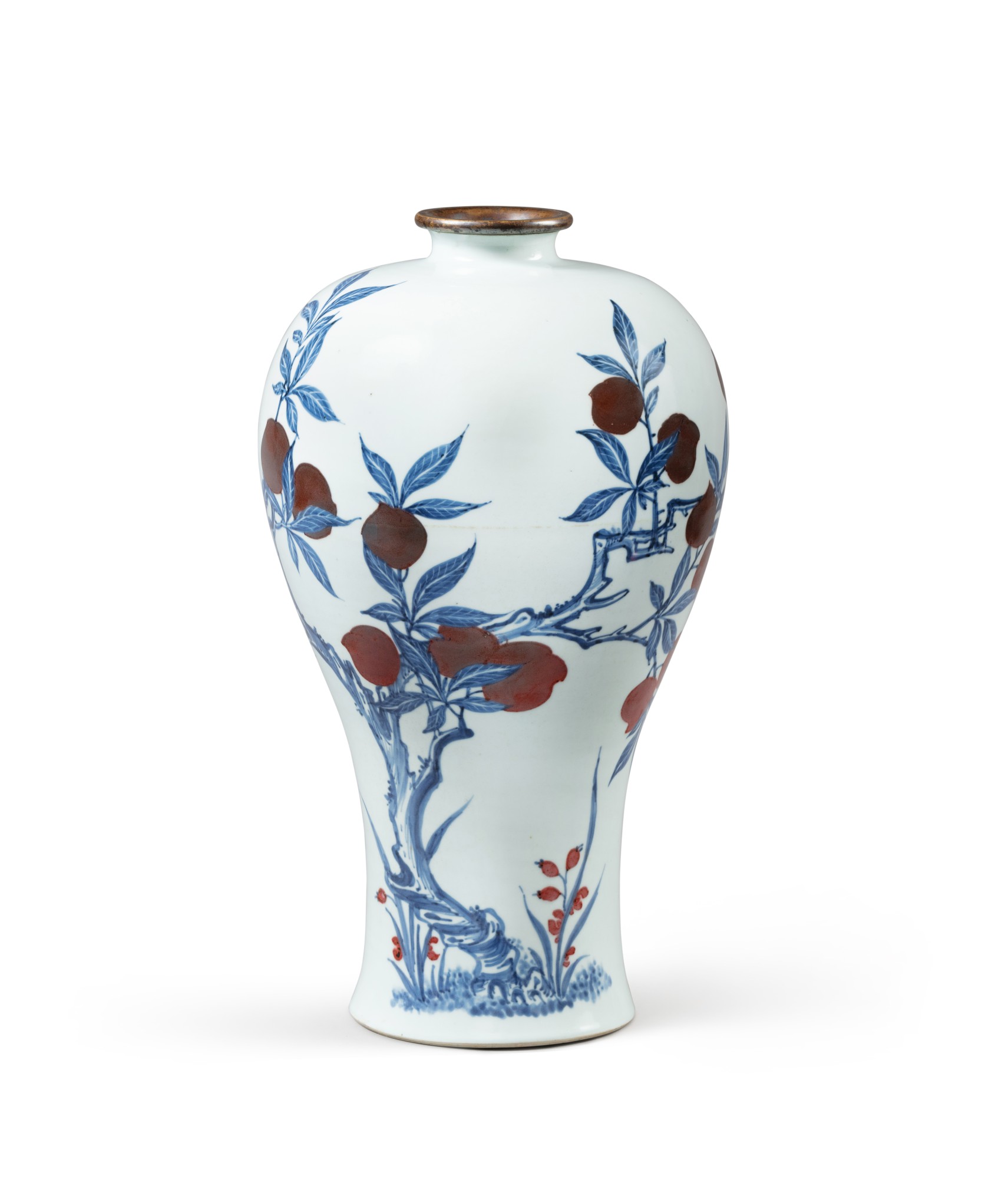 清康熙 青花釉裏紅壽桃紋梅瓶