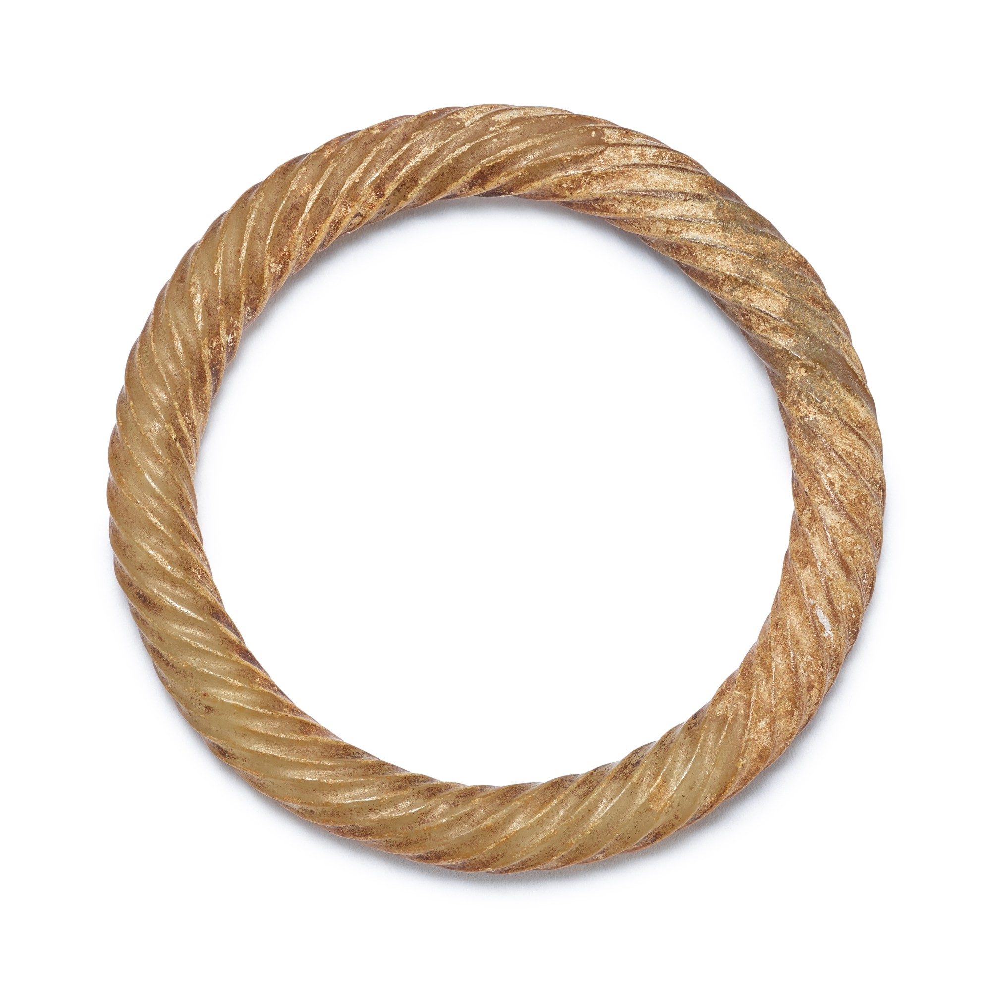 A jade 'twist-rope' ring, Warring States period 戰國 絞絲玉環