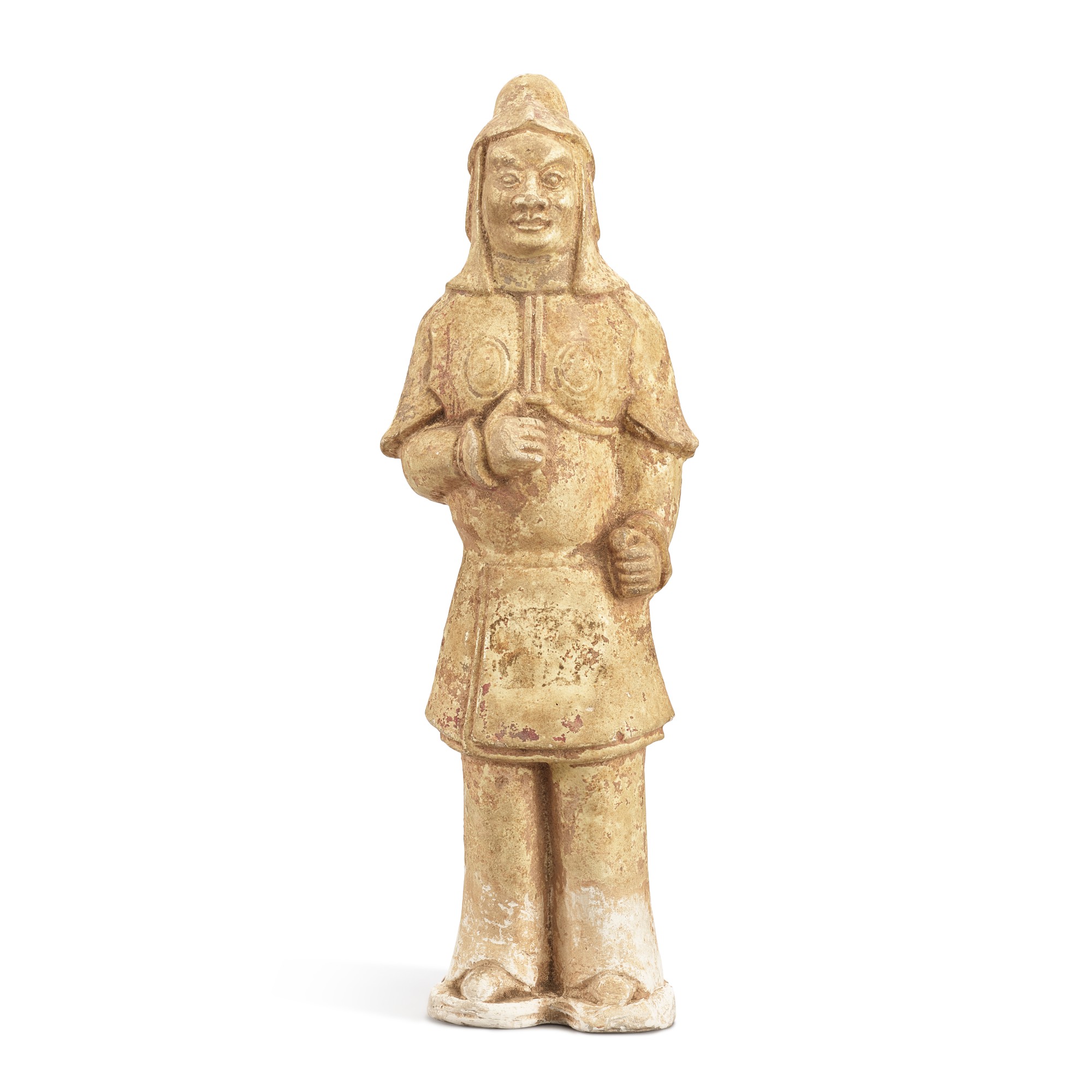 A straw-glazed standing figure of a warrior, Tang dynasty 唐 淡黃釉武士立俑